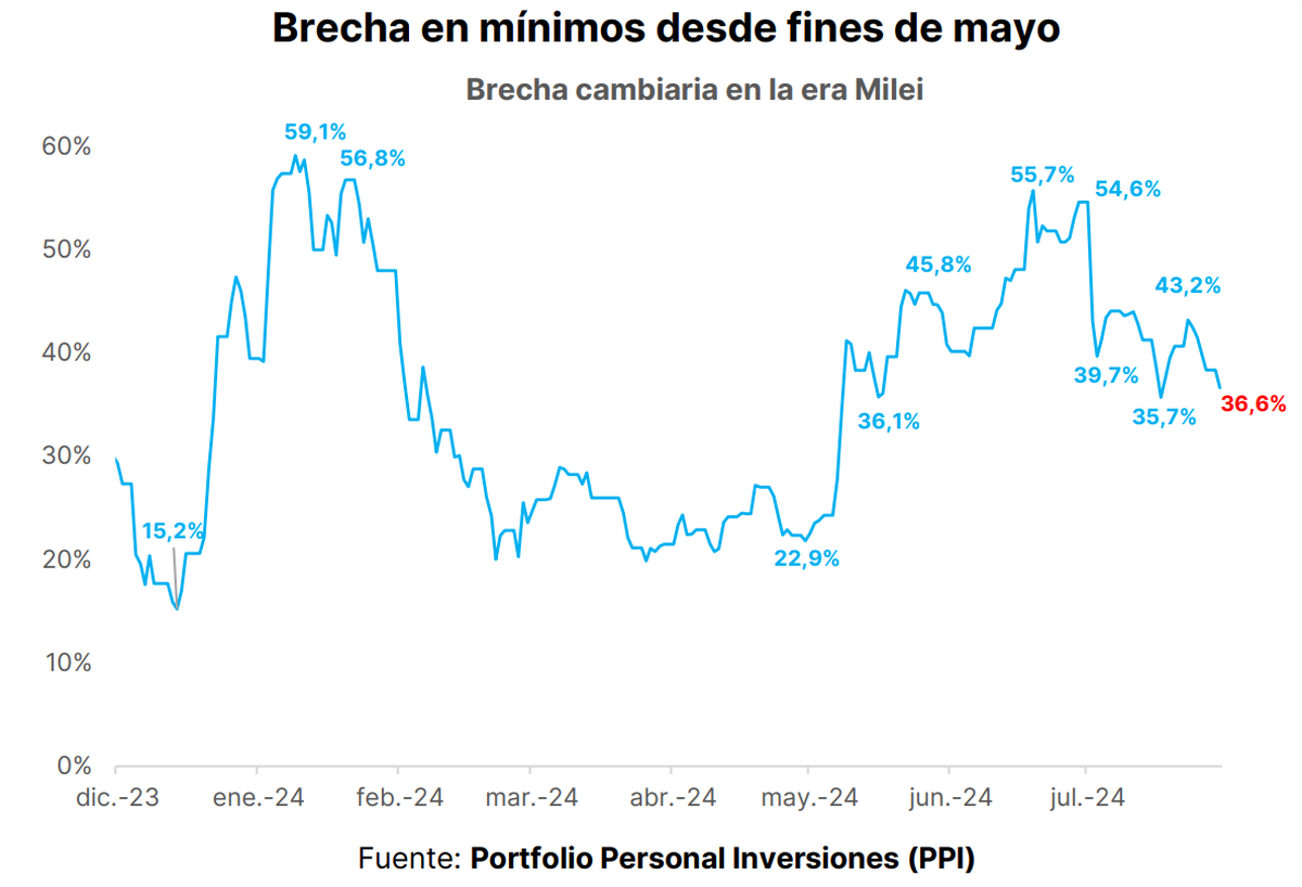 En PPI señalaron que la demanda privada, que alcanzó un récord a finales de julio, se desaceleró recientemente, pero consideraron que este fenómeno es transitorio. También anticiparon que la demanda privada podría acelerarse nuevamente debido a pagos de ONs y provinciales en agosto, y que, en septiembre, el nuevo régimen de importaciones podría llevar a un aumento de la demanda en el mercado oficial.