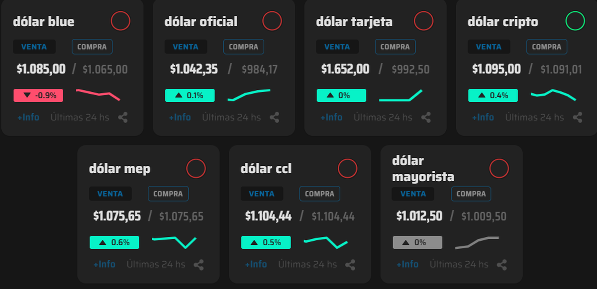El dólar blue retrocedió $10 este martes (3/12), cotizando a $1.085 en el microcentro porteño. En el segmento bursátil, el dólar contado con liquidación (CCL) se negoció a $1.104, mientras que el dólar MEP cerró en $1.075. Este movimiento llevó la brecha cambiaria a niveles históricamente bajos, perforando el 10%.