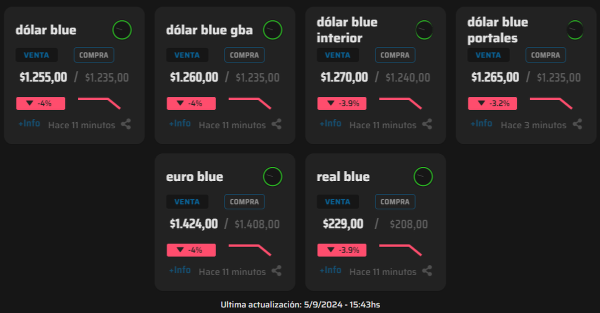 De acuerdo con Finanzas Argy, el resto del mercado blue resulta: