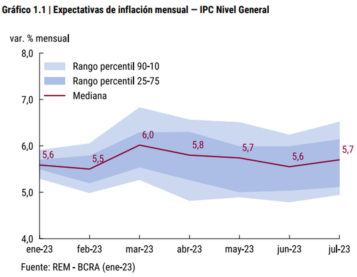 El más reciente REM -Relevamiento de Expectativas del Mercado- del Banco Central (BCRA) y el último IPCBA da a entender que el mercado sigue con inercia inflacionaria y que los esfuerzos del Gobierno no están siendo suficientes. El informe de la entidad monetaria explicaba: