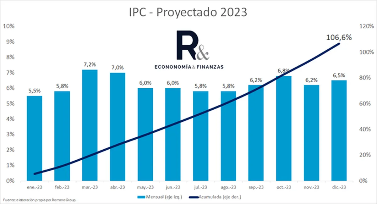 Romano Group, confía que la inexistencia de un plan de estabilización en materia monetaria que ancle las expectativas inflacionarias hacia la baja continuada provoca que el número de enero sea mayor al de diciembre. En este sentido, con una inflación en el primer mes de 5,5%, esta es la proyección de la consultora: