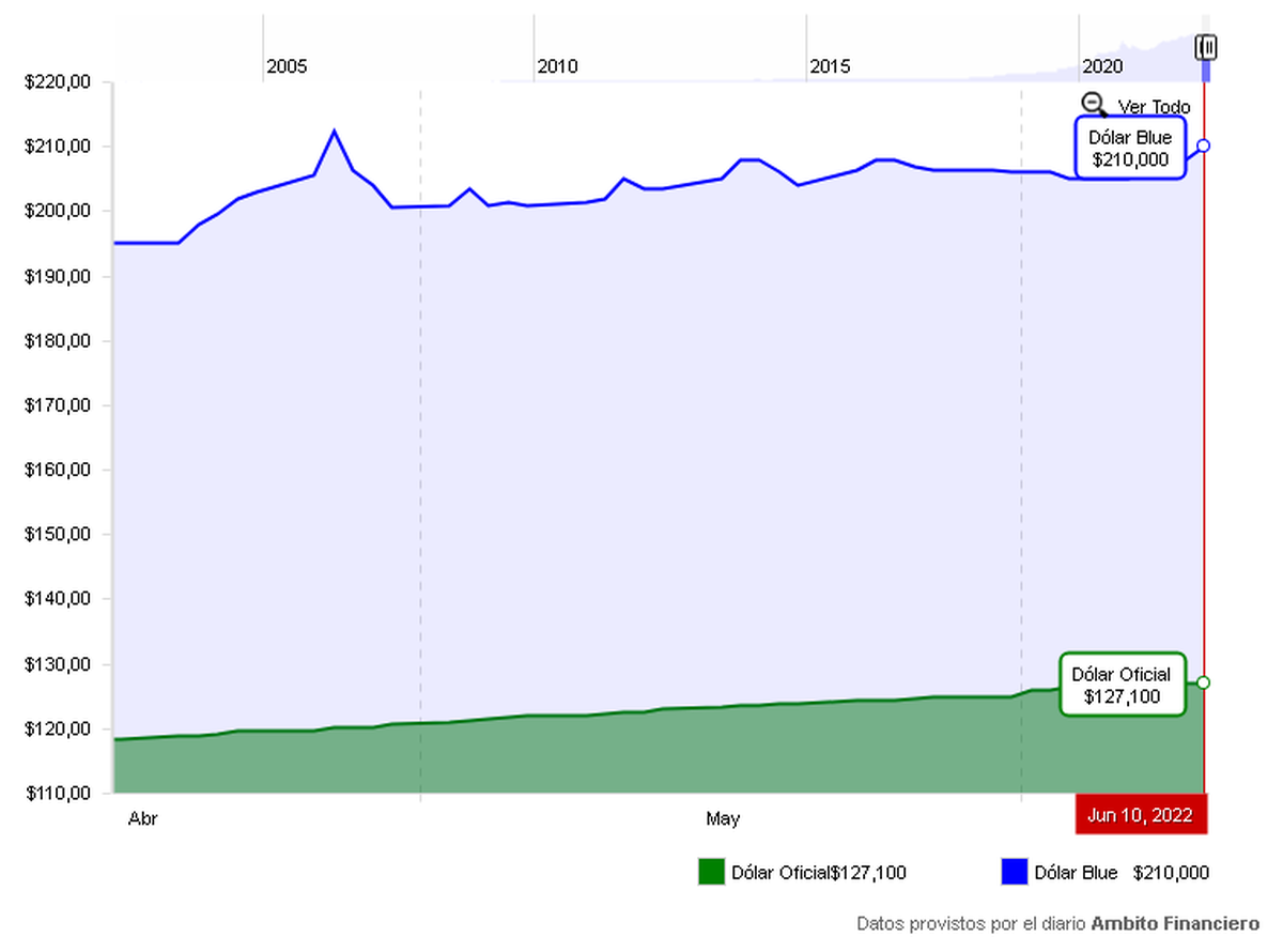 Con este nuevo incremento, la cotización informal pasa a ubicarse en $207 para la compra y $ 210 para la venta. A la vez, amplía la brecha a más de 72% respecto al tipo de cambio oficial mayorista y 65% en comparación con el promedio del minorista.