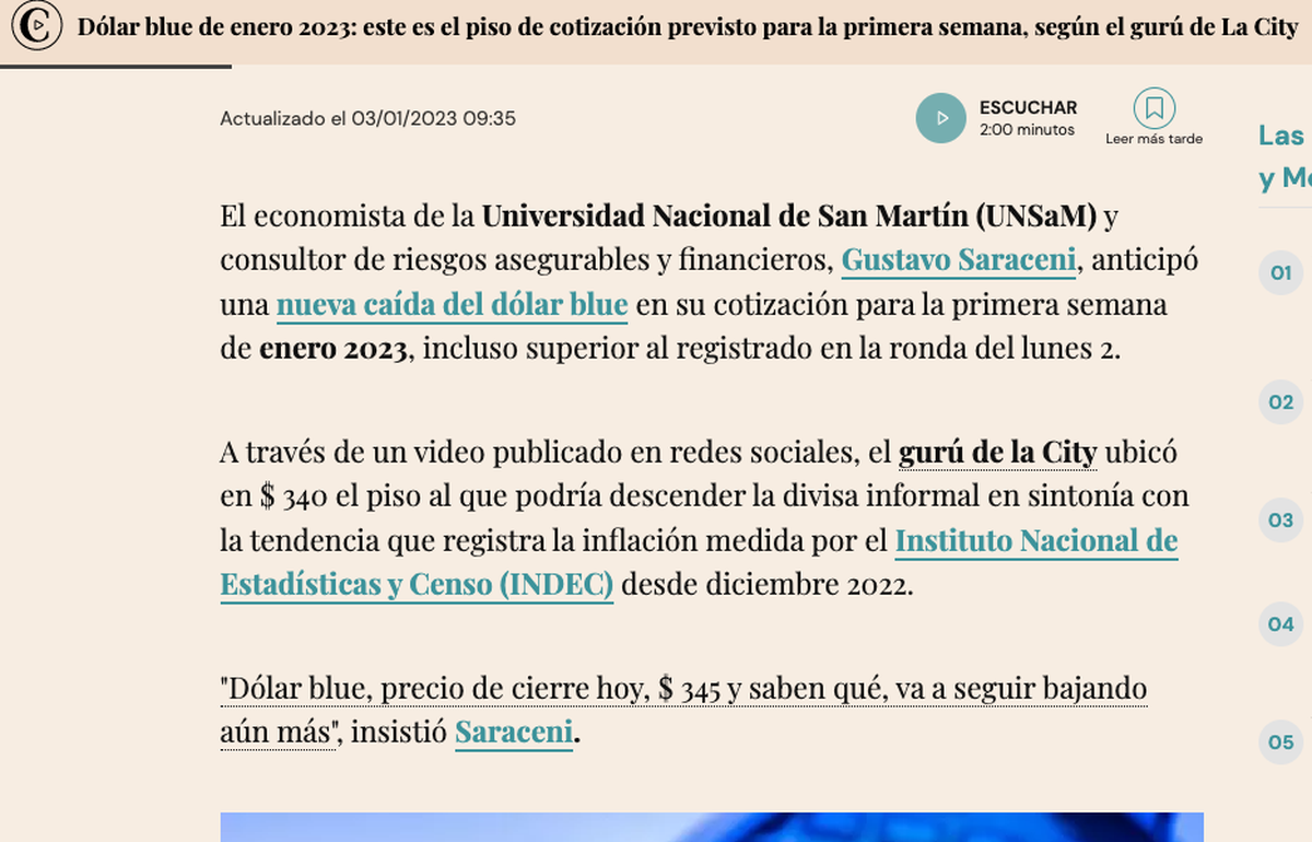 O hacer como Ámbito Financiero, que luego de pronosticar cotizaciones incendiarias, decidió dedicarse estrictamente al SEO y notas de ANSES.