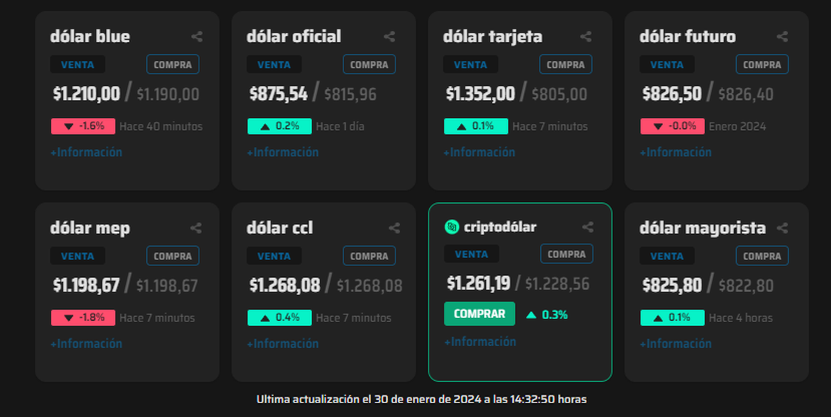 La semana inició con un notorio aumento del dólar, en todas sus variantes, debido al momento crucial que se vive para la obtención de la media sanción en Diputados de la Ley Ómnibus. El dólar futuro volvió a subir y los inversores "ya pactan" un precio del dólar oficial que cuadruplicaría el ritmo del crawling peg (del 2%).