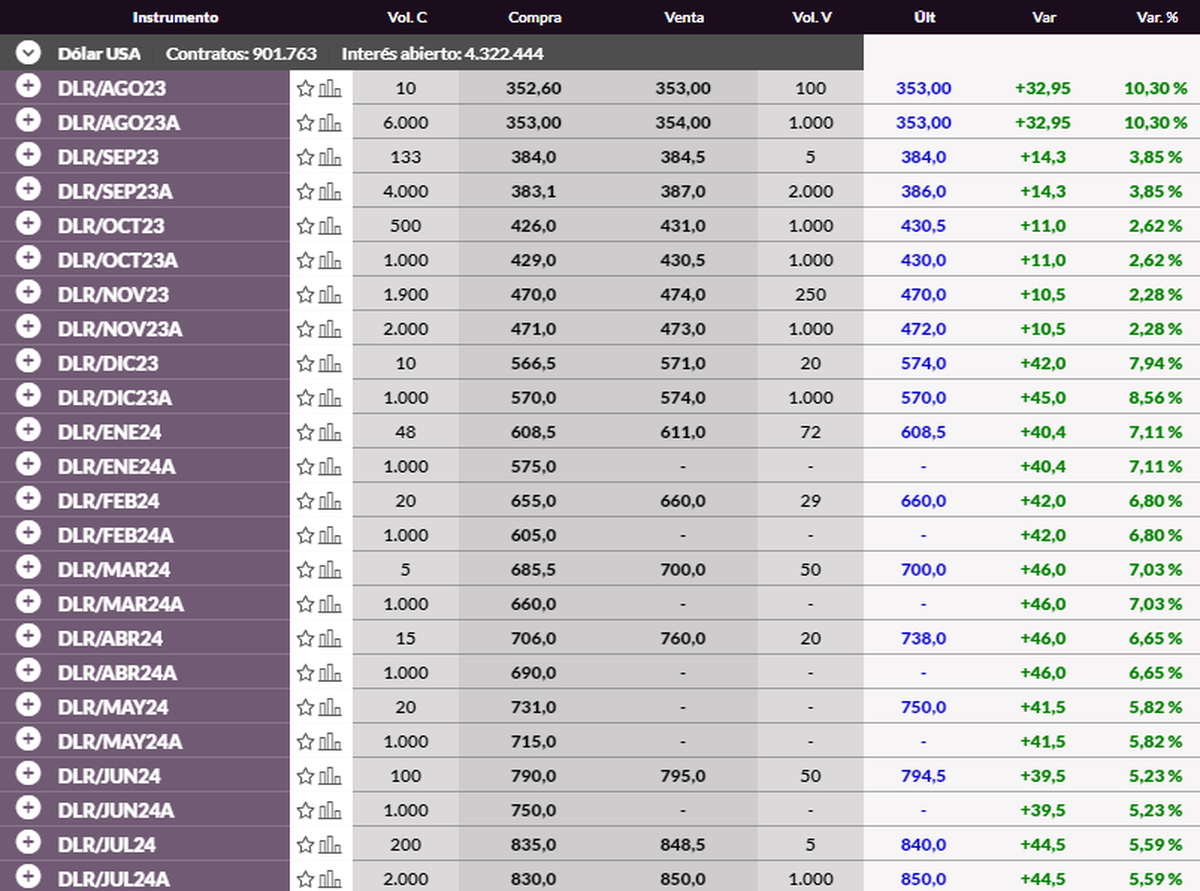 En prácticamente todos los meses los contratos del dólar futuro avanzan fuerte (hasta un 10,30%)