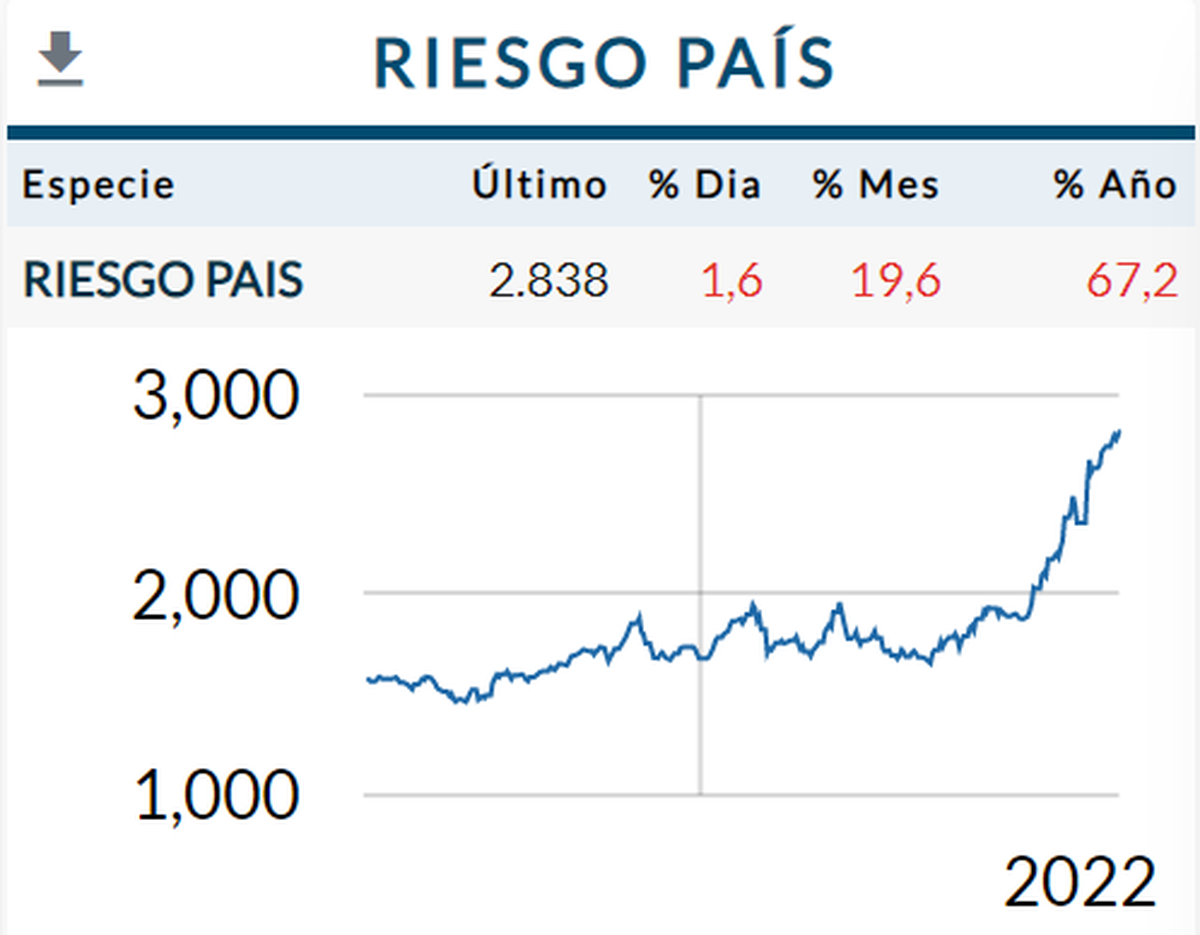 En tanto, el Riesgo País sigue por encima de los 2.800 puntos básicos.