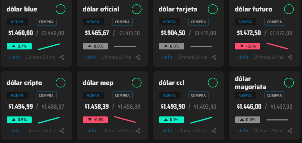 El dato más llamativo llegó por el lado del dólar MEP. El tipo de cambio implícito del AL30 cerró en $1.460, con una brecha inferior al 1% contra el mayorista y, durante la mañana, llegó incluso a operar por debajo del spot. Un comportamiento atípico que refleja la magnitud del ajuste reciente.