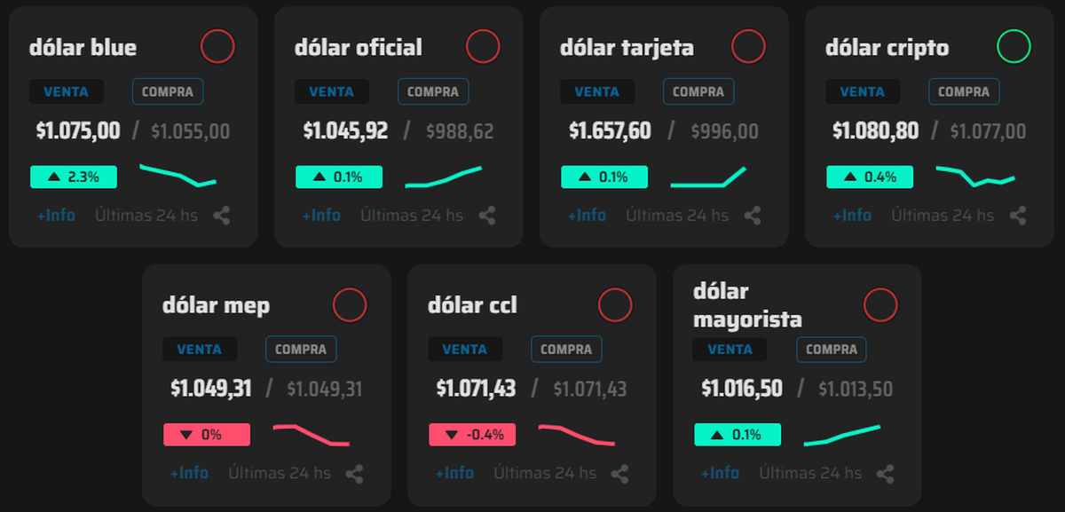 El dólar blue, a diferencia del MEP y el contado con liquidación (CCL), sube un 2,3% a $1.075, elevando la brecha con el oficial.