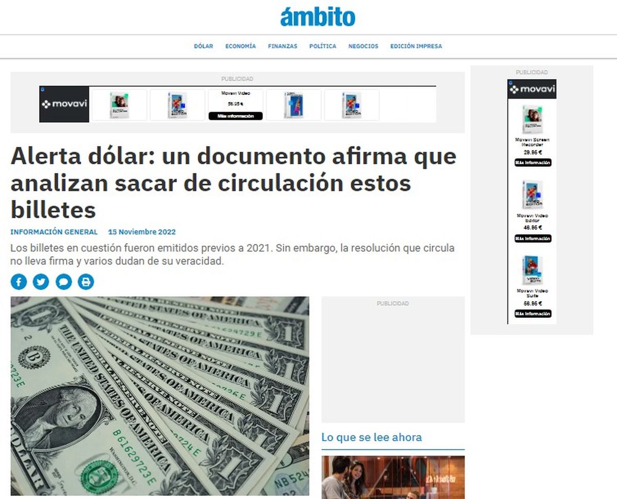 ¿Qué dice la noticia sobre sacar de circulación millones de dólares legales?