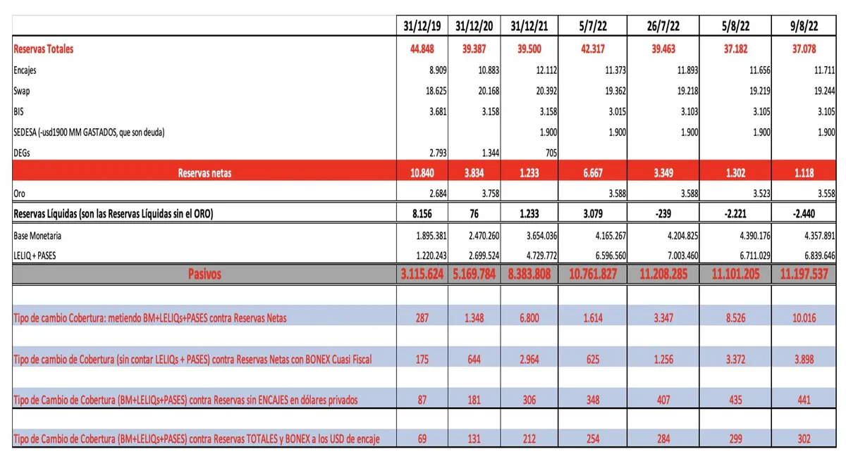 El economista destaca como las reservas del BCRA bien medidas -sin contar DEGs- caen cerca de US$ 18.776 MM contra junio 2021: