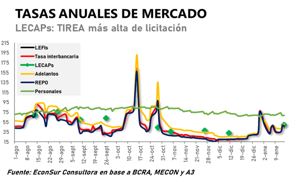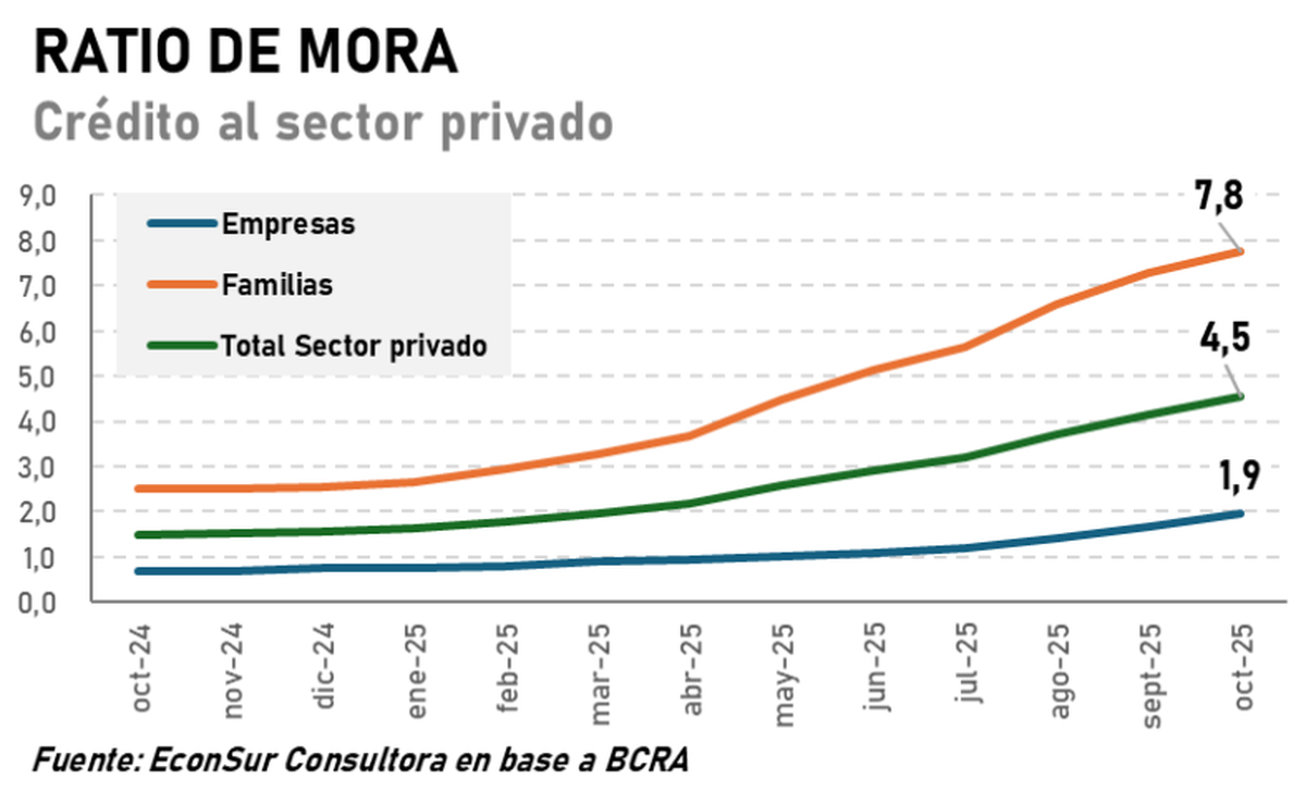 EconSur señala que esta decisión no es accidental. La escasez de liquidez es parte del diseño del programa, con el objetivo de evitar desbordes sobre el tipo de cambio y contener la inercia inflacionaria. El costo aparece del lado del crédito, que sigue caro y selectivo, especialmente para hogares y pymes.