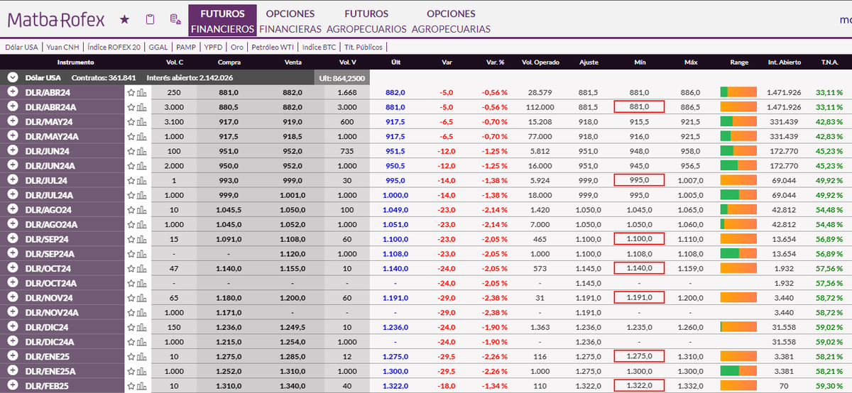 Por ahora, el mercado se mantiene optimista en cuanto a la cosecha y liquidación, motivo por el cual hoy (8/4) se pudo observas una fuerte caída en todos los contratos de dólar futuro.