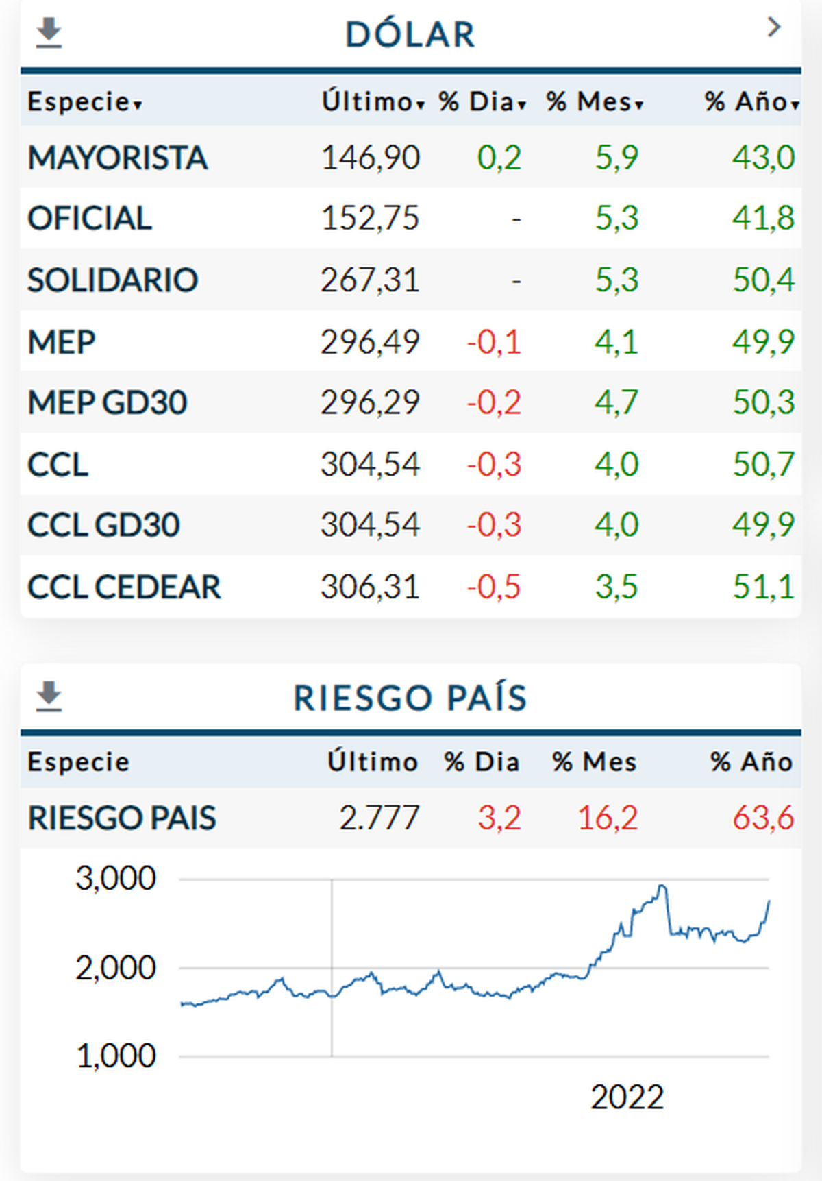 En tanto, el dólar CCL que en un momento se había disparado a $316, alrededor de las 13 había vuelto a bajar $304. El dólar MEP o bolsa hace lo propio a $296.