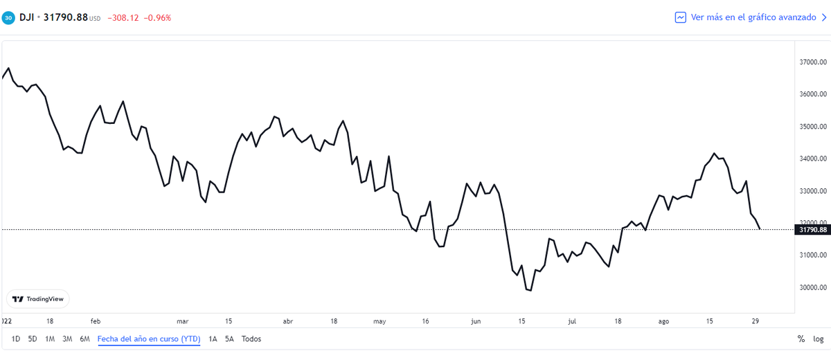 Por otro lado, el Dow Jones Industrial -DJI- cayó 308,12 puntos, o un 0,96%, a 31.790,88: