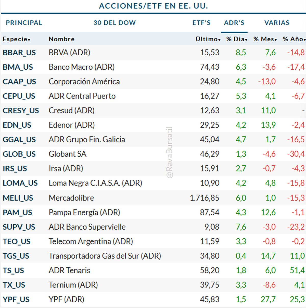 El Merval y los bonos argentinos se suben al rally de Wall Street