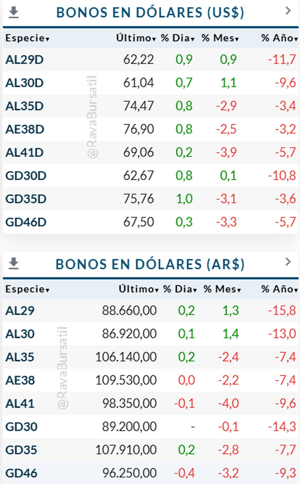 En pesos, la tónica era similar, aunque algo más moderada. El AL29 subía 0,2%, el AL30 avanzaba 0,1%, el AL35 ganaba 0,2% y el GD35 también mostraba una mejora de 0,2%. No se trató de un salto explosivo, pero sí de una rueda favorable para una curva que venía arrastrando dudas y oscilaciones en las últimas semanas.