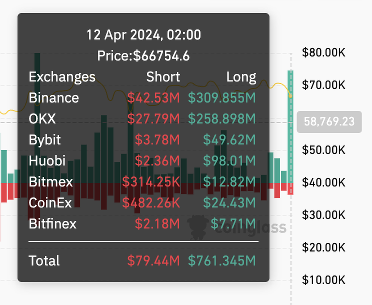 De US$ 71.200 a US$ 66.000 (-4,7%), esa fue la caída que presentó bitcoin (BTC) en las últimas horas. Esta sangría derivó en la liquidación de más de US$ 750 millones -en un solo día-, la última vez que ocurrió algo similar, la cripto pasó de US$ 62.000 a US$ 73.000.