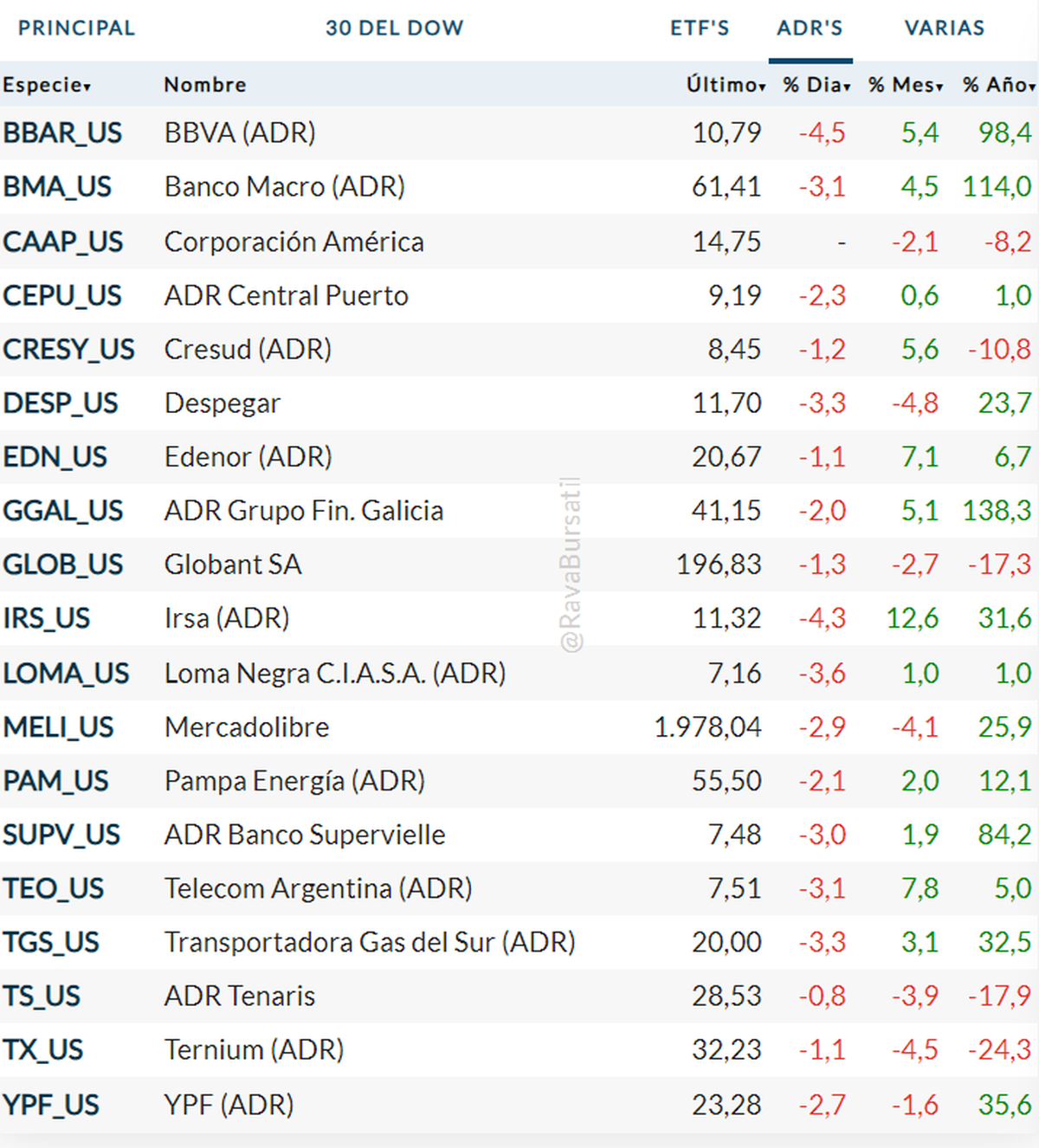Si miramos el panel del país norteamericano veremos como prácticamente ninguna acción se salva del día de hoy.