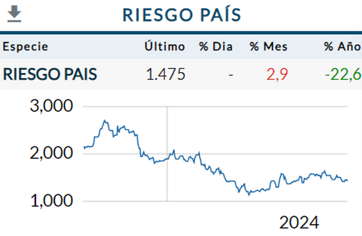 Mientras tanto, el riesgo país se ubica por encima de los 1.450 puntos a 1.475 puntos básicos. Seguimos muy lejos de los 800 puntos básicos necesarios para poder entrar en el mercado internacional a tasas razonables.