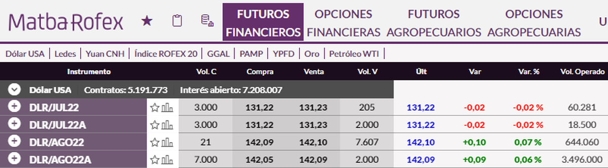 Mientras tanto, el volumen operado en futuros, con vencimiento al 31 de agosto del 2022, asciende a 3.496.000: