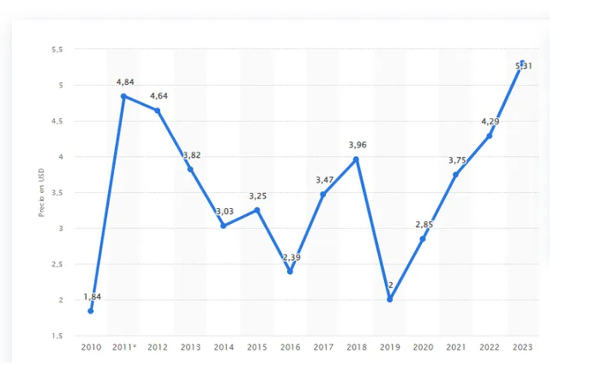 Según el sitio Statista, así evolucionó el precio del Big Mac en Argentina con el correr de los años a Enero de 2023: