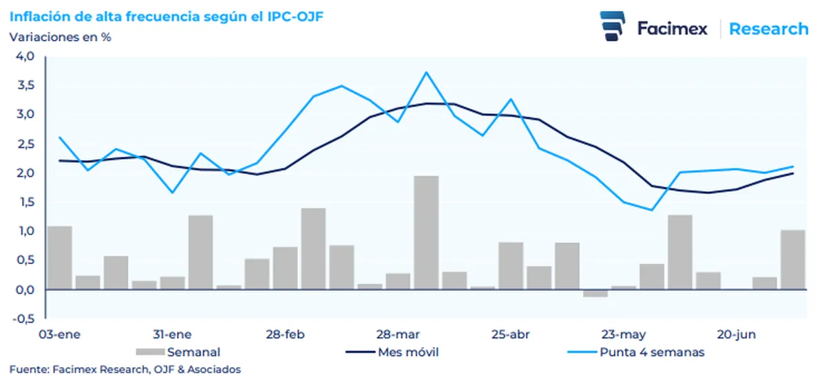 El informe diario de Facimex Research, basado en el índice elaborado por OJF & Asociados, confirma que julio comenzó con una dinámica de precios aún más suave que junio, cuando el mismo indicador había marcado un alza del 1,3% semanal en la primera semana del mes.