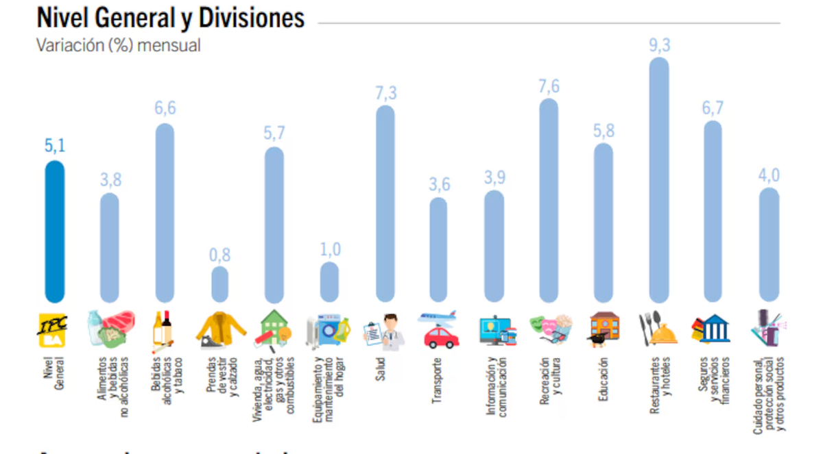 - Salud:+7,3% debido a las subas en cuotas de prepagas y medicamentos.