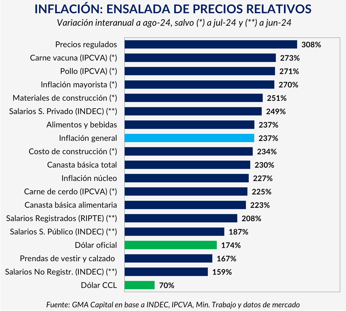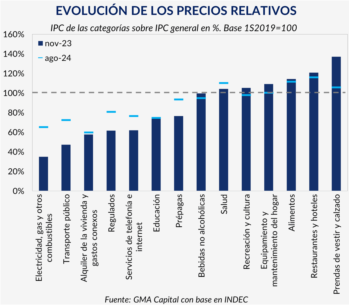 Este ajuste está impulsando lo que se conoce como un efecto de catch-up o "puesta al día". Luego de haber corregido precios de alimentos, combustibles y del propio dólar, la economía se encuentra en una etapa de reequilibrio de precios relativos. Y el proceso no ha concluido: septiembre traerá aumentos promedio del 4% en combustibles, un 5% en tarifas de agua potable y cloacas, y un ajuste del 4% para quienes no estén registrados en el RASE (Registro de Acceso a los Subsidios de Energía).
