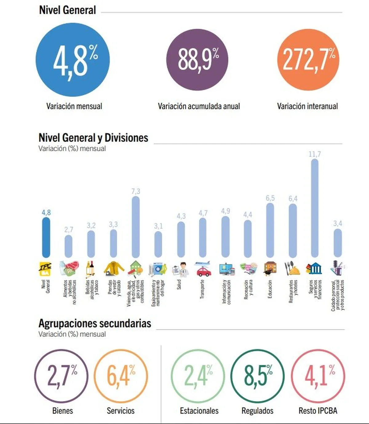 El rebote de la variación de precios está explicada por "los precios regulados, que registraron un incremento mensual del 8,6%, donde incidieron principalmente las actualizaciones de tarifas de gas y electricidad". "En cambio, el IPC núcleo, que excluye a los precios regulados, tuvo una suba del 4,0%", explicaron desde LyP.