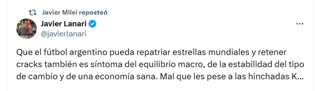 El propio presidente reposteó en X una mensaje de Javier Lanari, segundo de Manuel Adorni: