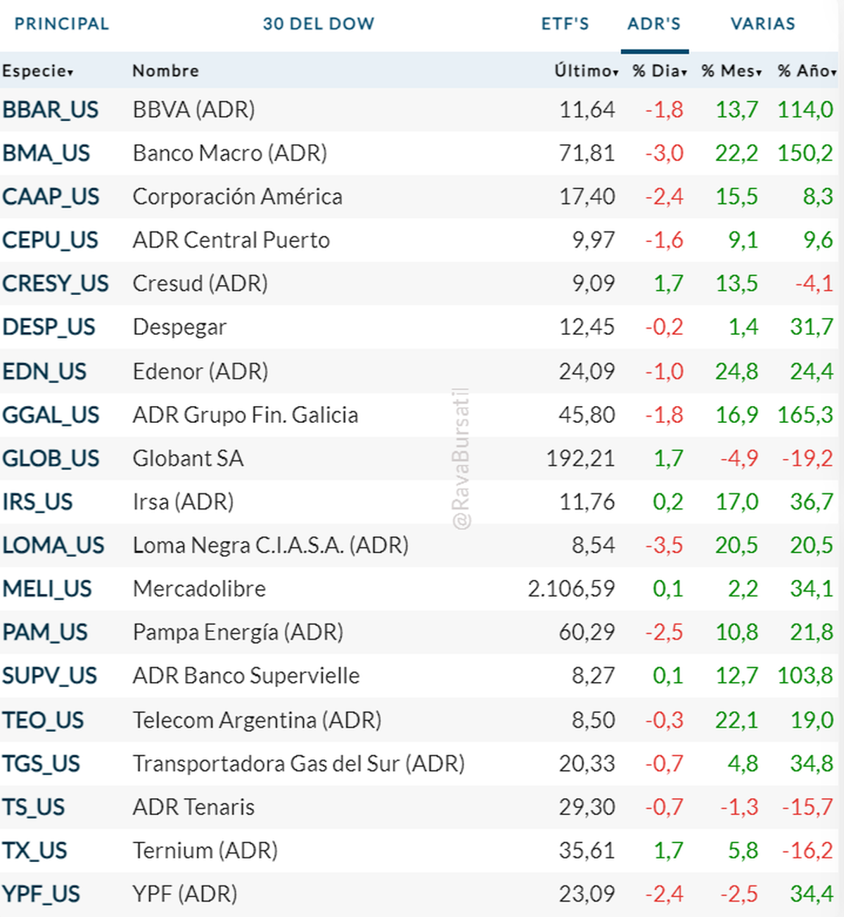 En Wall Street, los ADRs argentinos registran mayoría de pérdidas