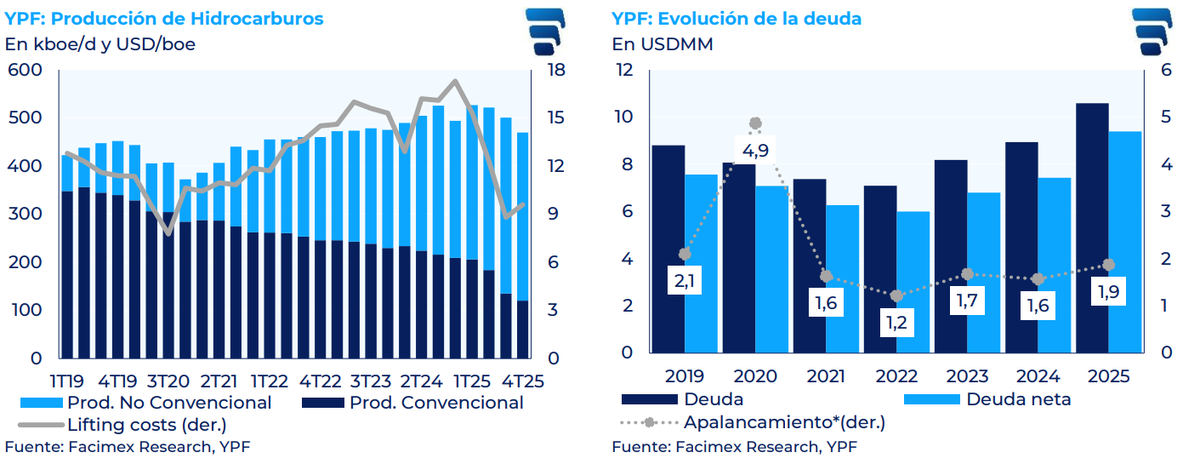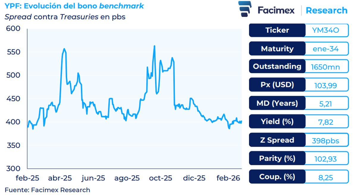 En enero, YPF reabrió una ON internacional con vencimiento 2034 por US$550 millones a una tasa anual efectiva de 8,1%, el nivel más bajo que consiguió en los últimos nueve años según el informe. Esa operación sirvió para reforzar liquidez al inicio de 2026 y financiar movimientos estratégicos.