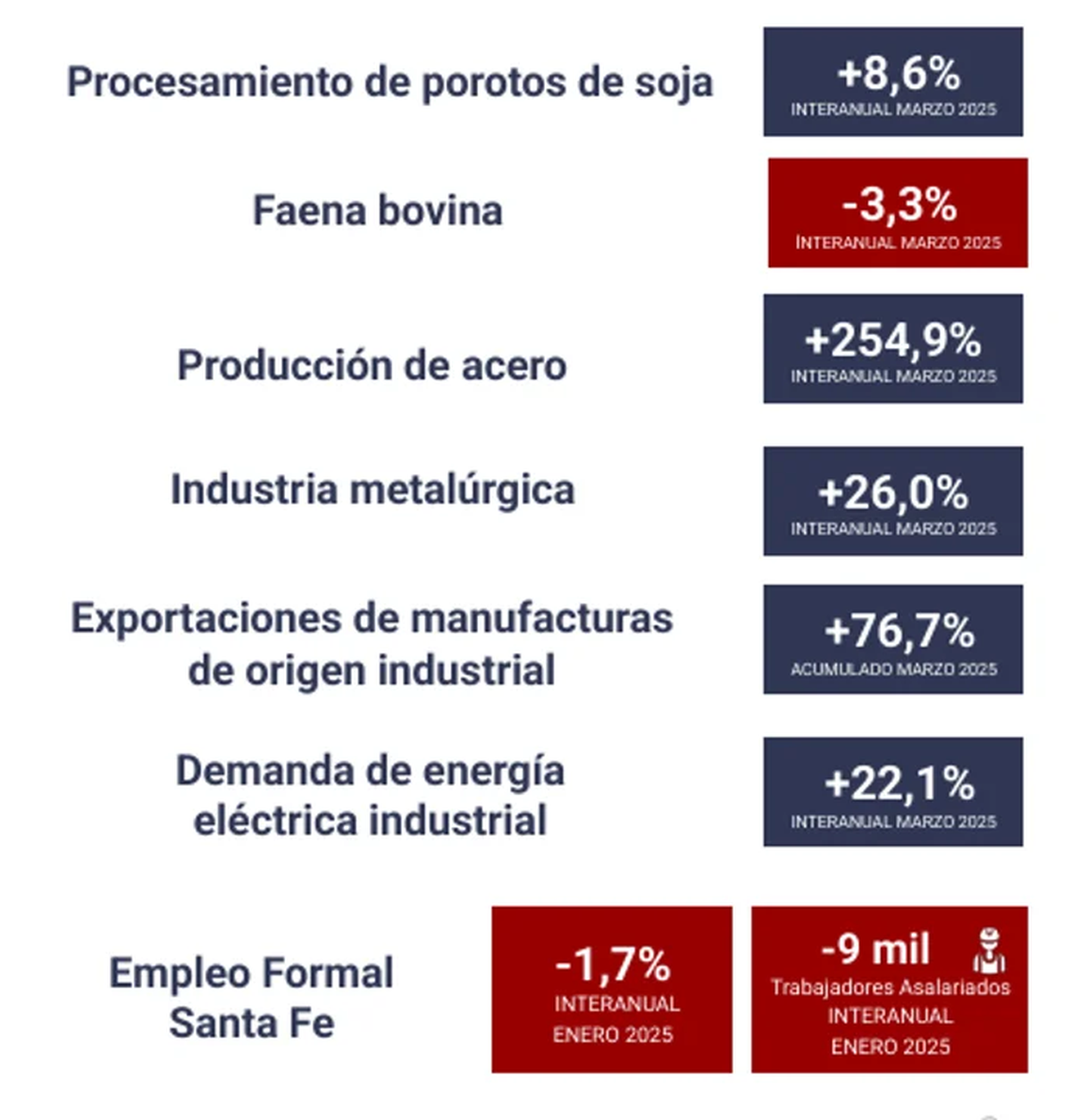 Cabe remarcar que Santa Fe se encuentra particularmente impactada por la menor demanda de acero producto del freno a la obra pública nacional.
