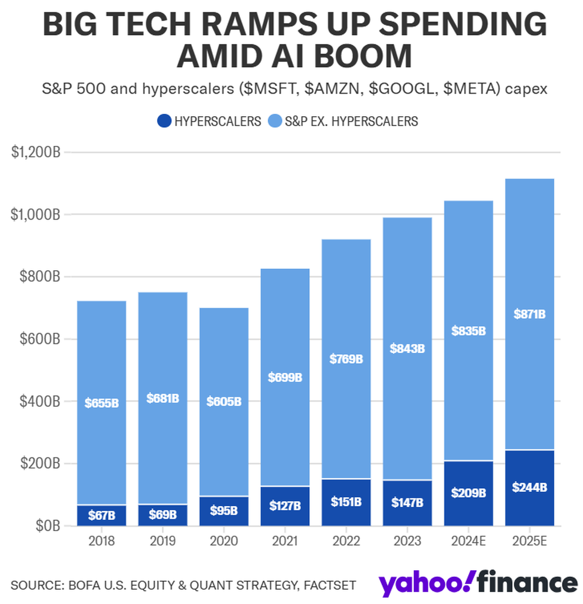 En línea con estas proyecciones, Savita Subramanian, de BofA, establece un objetivo de 6.666 puntos para el S&P 500 en 2025, subrayando que la IA será un motor crucial en la ampliación de las ganancias, particularmente debido al aumento en el gasto de capital por parte de gigantes como Microsoft (MSFT), Amazon, Alphabet y Meta, que elevarán sus inversiones un 42% en 2024 y otro 17% en 2025, alcanzando un total de 244.000 millones de dólares.