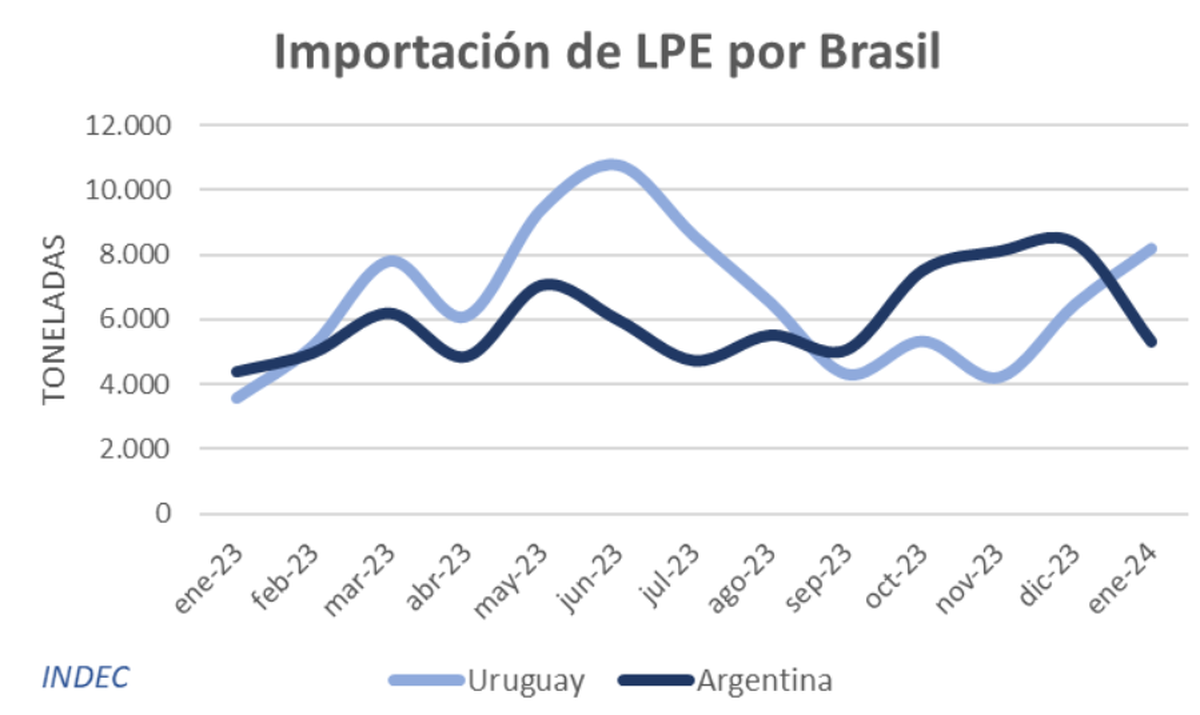 “La aduana brasilera para enero 2024 registra una menor importación de leche en polvo entera proveniente de Argentina, mientras que Uruguay sigue en alza”, destaca Snyder en referencia a las restricciones implementadas por el gobierno brasileño.