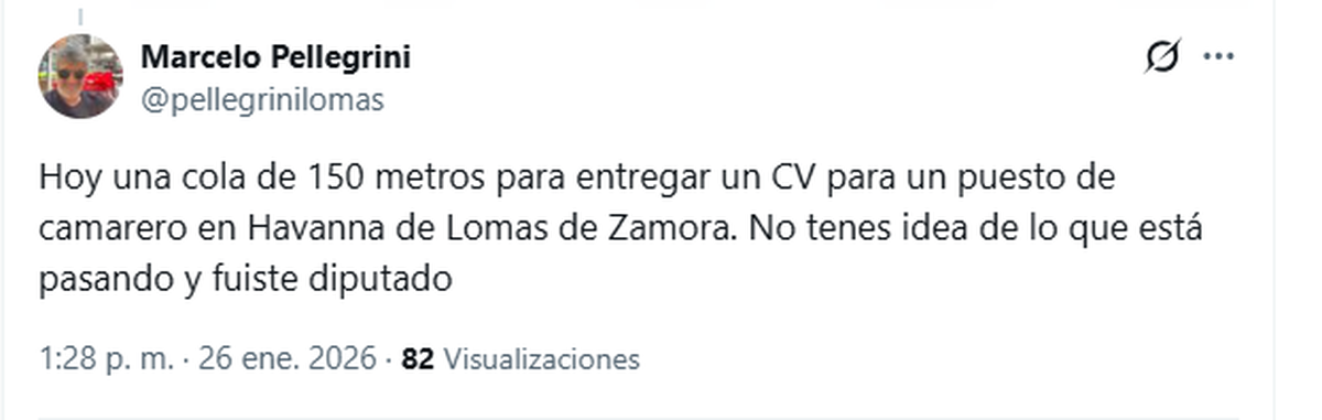 El dirigente empresarial advirtió que la situación refleja el nivel de desesperación social. "Ellos publicaron que iban a hacer entrevistas y desde las 4 de la mañana hay gente haciendo cola. Es terrible y es lo que está pasando, la gran desocupación. Hay gente que no puede llegar ni al día 10 y cada día va a empeorar", alertó.