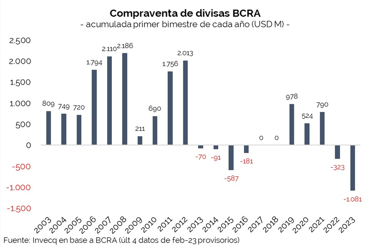 La entidad monetaria ya lleva perdidos cerca de US$ 1.081 millones en el mercado de cambios durante el primer bimestre del año. El economista, Esteban Domecq explica como el atraso cambiario, brecha, dólar soja y sequía lograron traer el peor resultado en 20 años. Destacando que: