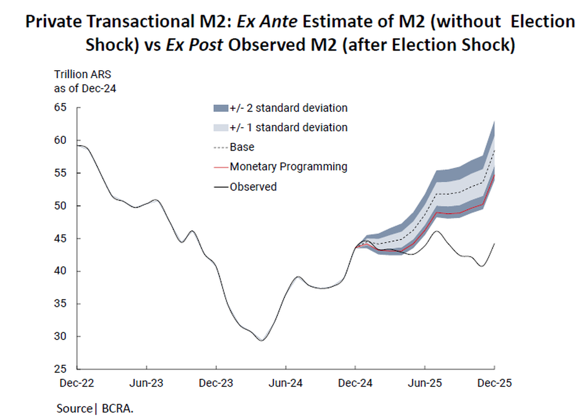 El diagnóstico oficial parte de un dato contundente. En los meses previos a los comicios legislativos de 2025, la economía argentina enfrentó una contracción sin precedentes en la demanda de dinero, equivalente a más del 50% del agregado M2, un fenómeno atípico incluso para economías con alto grado de dolarización, donde tradicionalmente los episodios de aversión al riesgo elevan la preferencia por liquidez en moneda local.