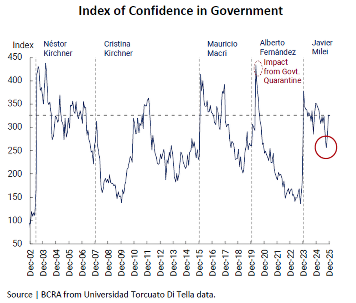 Una vez conocidos los resultados electorales, la reacción de los mercados fue inmediata. Los spreads soberanos y corporativos regresaron a niveles previos al episodio de estrés sin necesidad de anuncios adicionales por parte del Banco Central ni del Ministerio de Economía, al tiempo que las tasas de interés domésticas retrocedieron con fuerza aun cuando no se reinstaló la ventana automática de liquidez que había sido eliminada en julio de 2025.