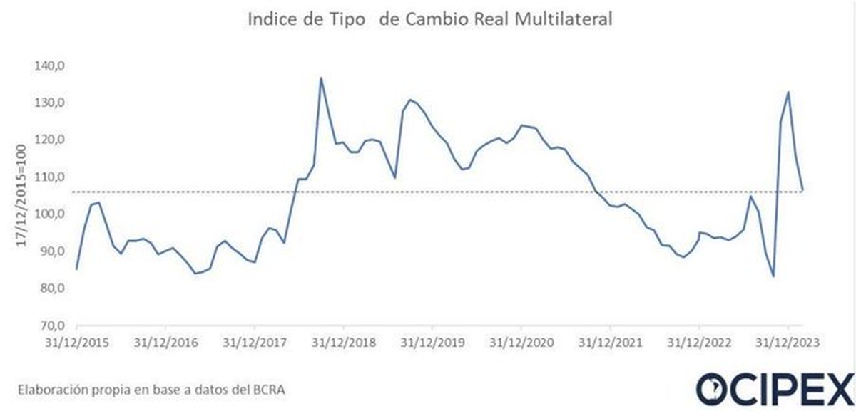 Por otro lado, el economista Fausto Spotorno señala que, hasta marzo de 2024, no se observa una clara apreciación cambiaria, ya que el tipo de cambio histórico promedio desde 1870 sería inferior al actual. Sin embargo, advierte que en el futuro podrían surgir definiciones en materia cambiaria y existe un riesgo de atraso cambiario.