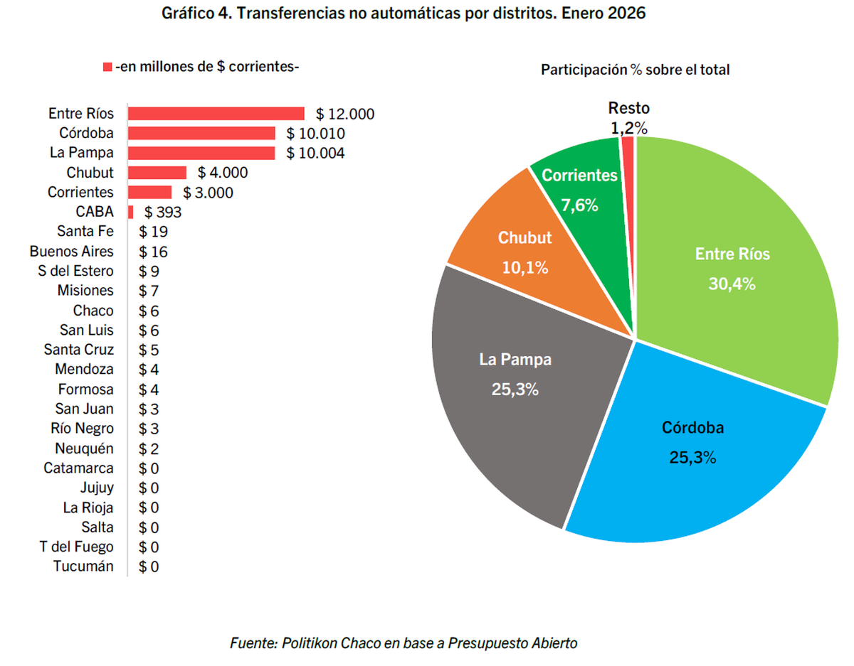 El comienzo de 2026 trajo una mala noticia para las provincias y es que, en enero, el Gobierno de Javier Milei envió mucho menos dinero discrecional.