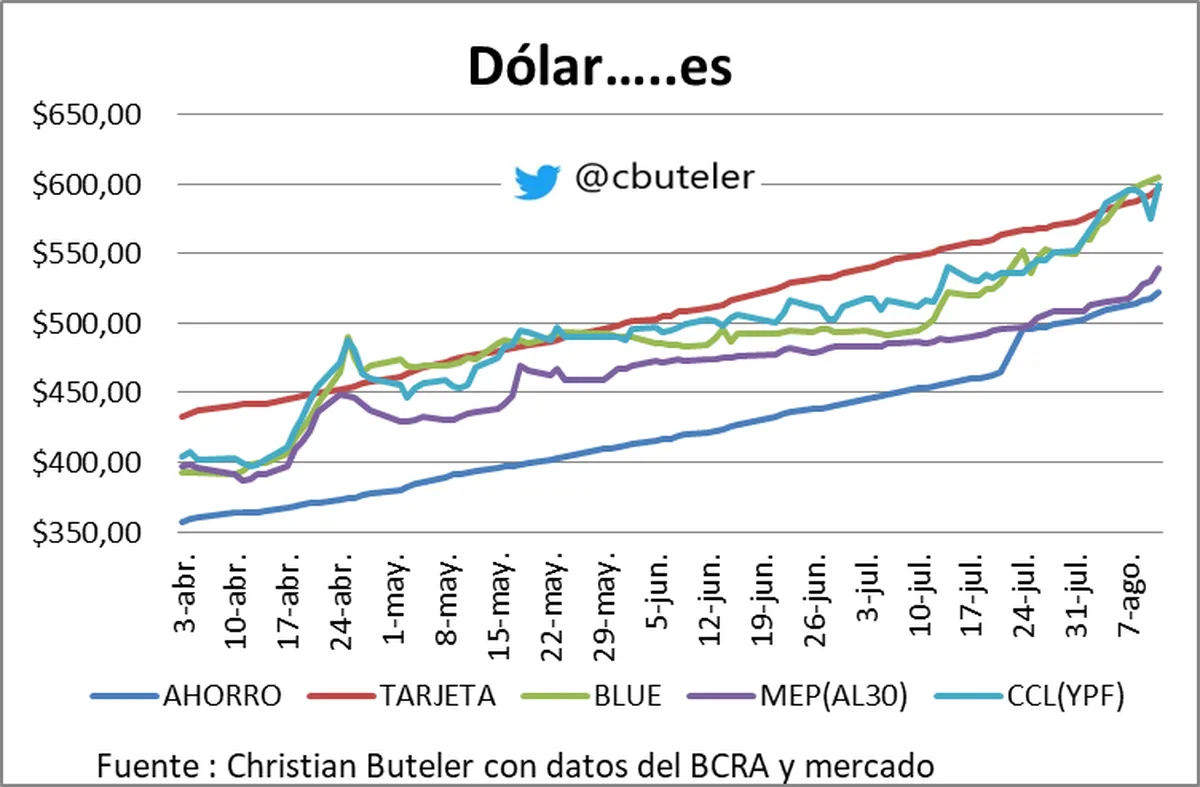 Así cerraron el viernes (11/8) los múltiples tipos de cambio presentes en la economía: