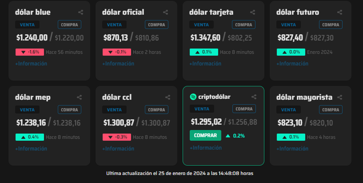 Por el lado de la divisa norteamericana, por ahora, tenemos una disminución en todas sus variantes