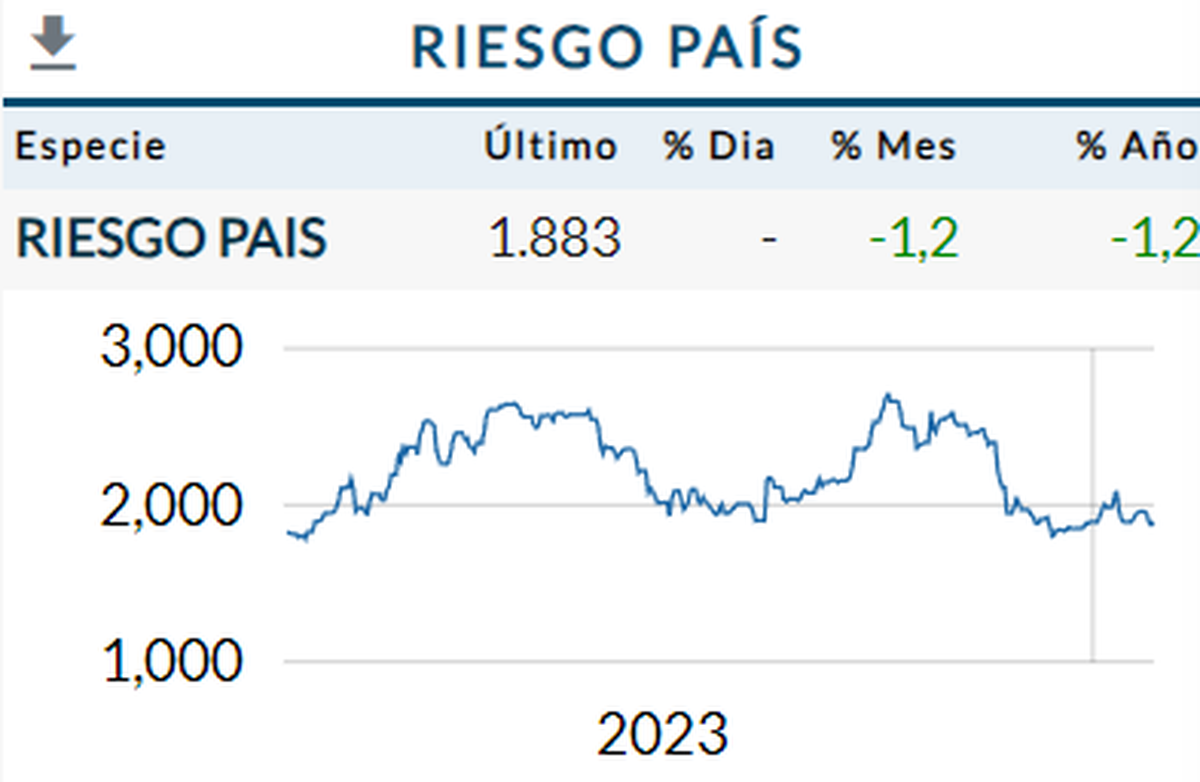 Esta tendencia es consistente con la evolución del Riesgo país, que ahora se ubica precisamente en los 1.883 puntos básicos.