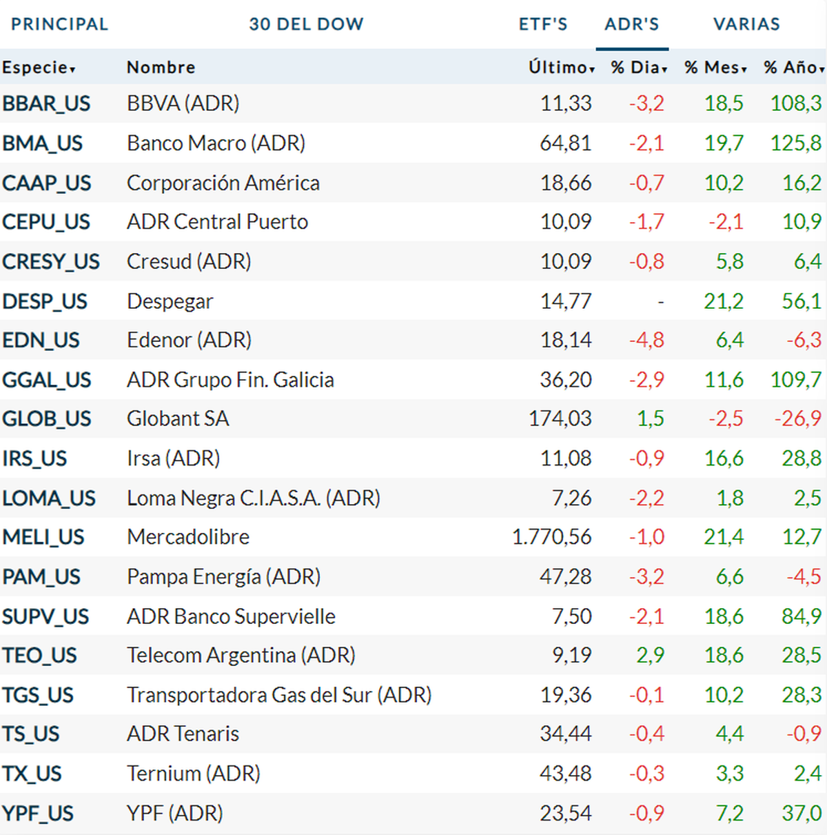 En Wall Street, la acción que protagonizó el mayor ascenso de la jornada fue Telecom y lo hizo con un 2,9%, mientras que la mayor baja se la lleva Edenor al cerrar en un -4,8%. Cabe mencionar que la tendencia general de la rueda fue negativa.