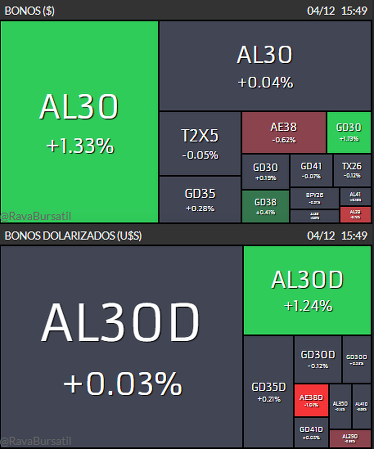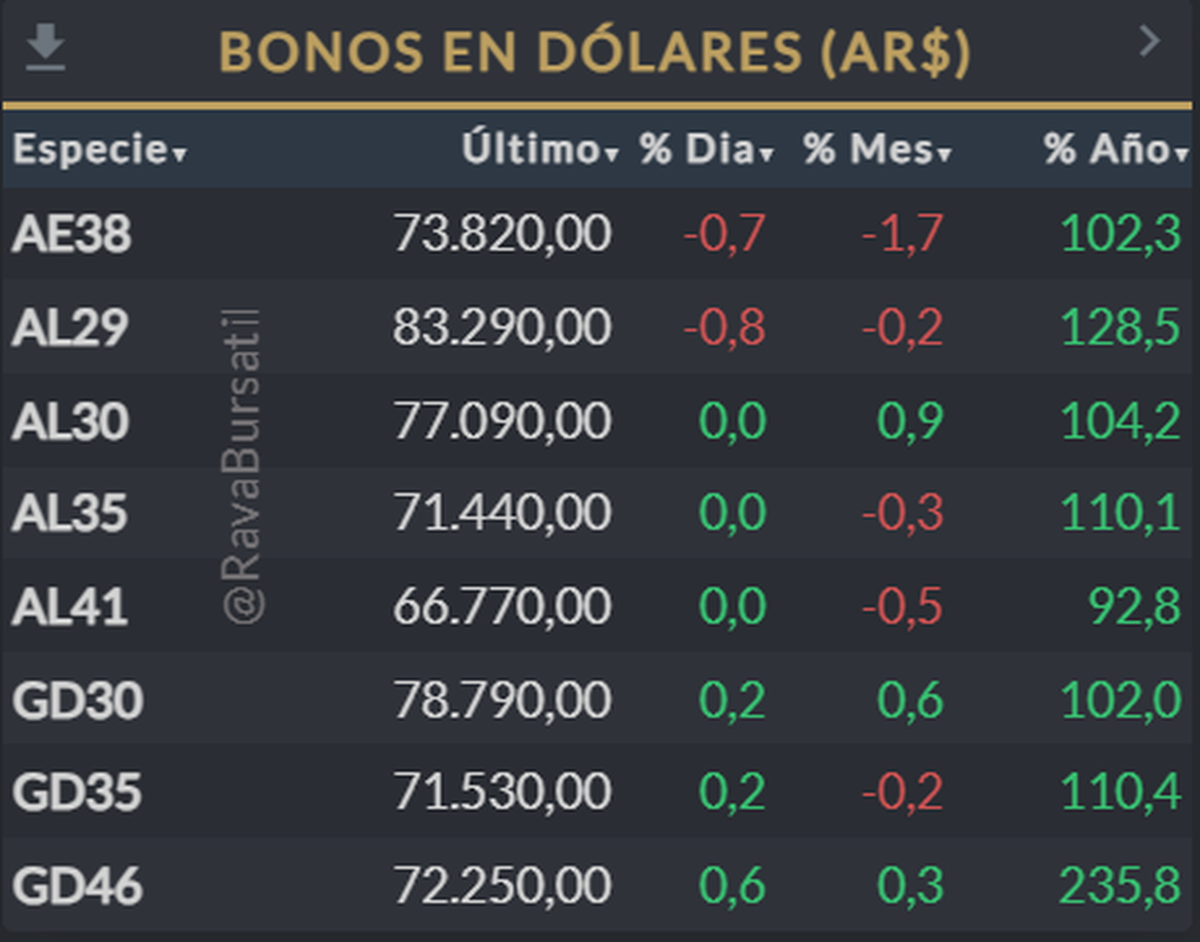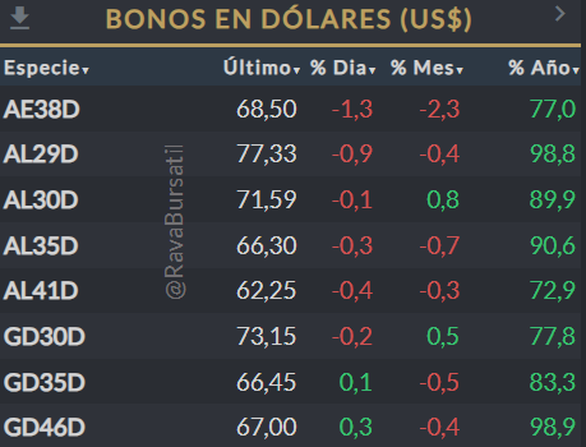 Los bonos en dólares no son los protagonistas de la jornada, pero llegan a presenciar caídas de hasta el 1,3%.