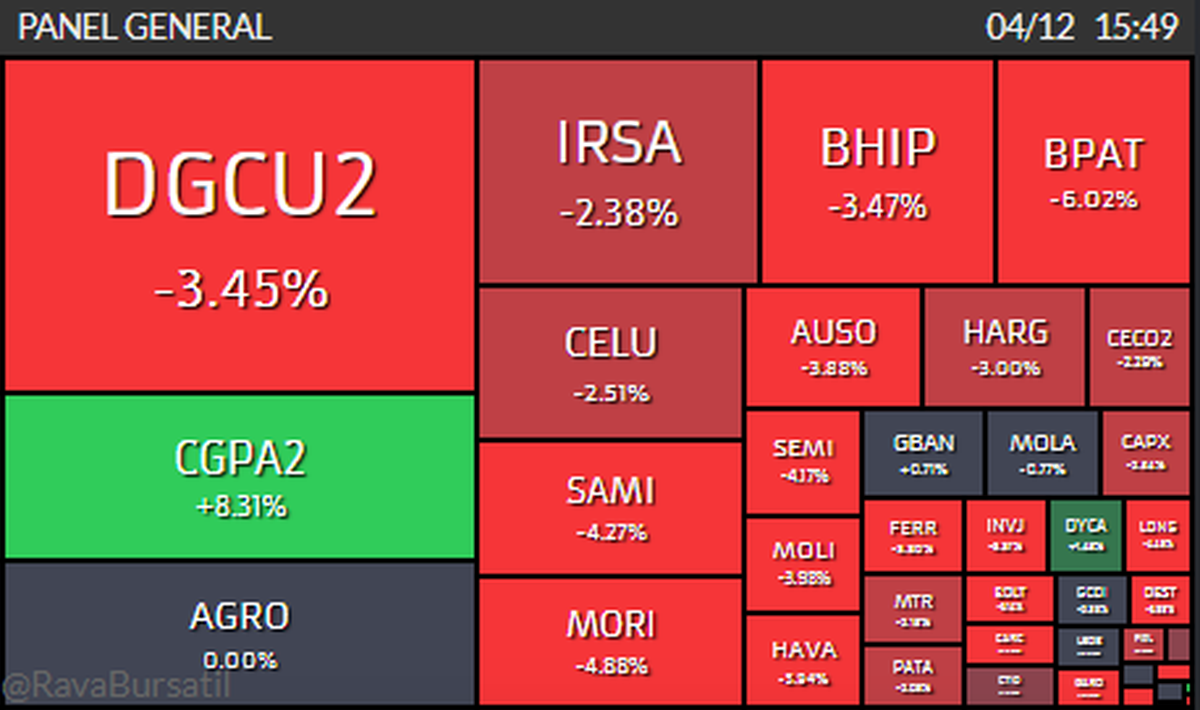 Por el lado del panel general, la historia no es muy distinta, salvo por CGPA2 (Camuzzi Gas) que marca un notable aumento del 8,31%