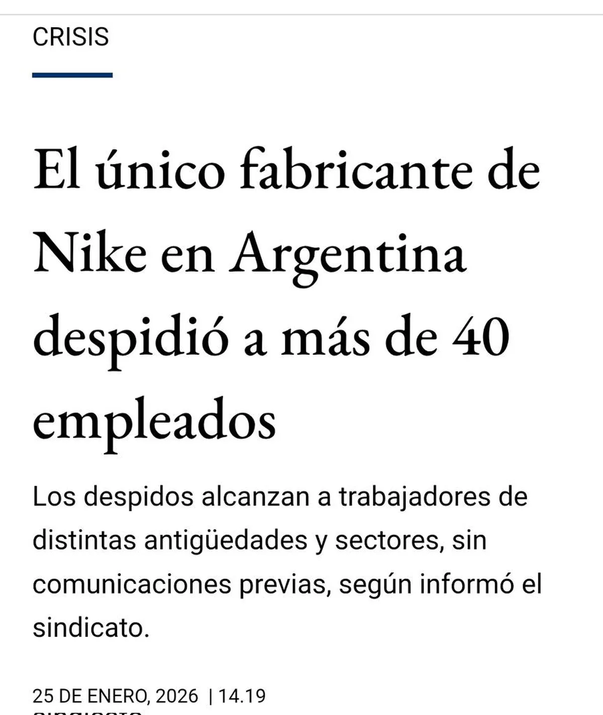 Otro caso emblemático fue el del Grupo Dass que fabricó zapatillas para marcas internacionales como Nike, Adidas, Umbro, Fila y Asics. La empresa despidió a 43 empleados de su planta ubicada en Eldorado, Misiones y la producción de esa fábrica para 2026 quedó comprometida solo hasta el mes de junio.