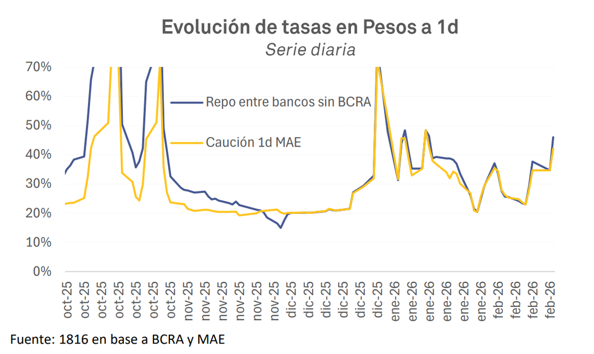 En esa lógica, la tasa overnight puede ubicarse en 20% o 25% y, en episodios puntuales, escalar por encima de 40%, sin que aparezca una reacción consistente para evitarlo.
