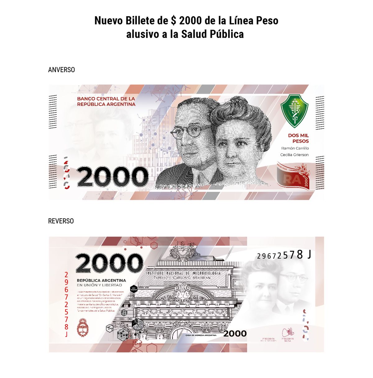 De este modo, el nuevo billete tendrá como protagonistas al Instituto Nacional de Microbiología Dr. Carlos Malbrán, en el reverso, y a los doctores Cecilia Grierson y Ramón Carrillo, precursores en el desarrollo de la medicina en nuestro país, en el anverso.